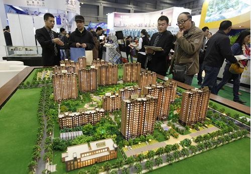 4月5日,觀眾在2012北京春季房地產展示交易會上參觀房產項目樓盤模型。當日,2012北京春季房地產展示交易會在北京中國國際貿易中心開幕。據介紹,本屆展會匯集百余國內開發企業和地產項目參加。根據主辦方統計,北京本地參展項目近50個,比去年秋季展會約增長17%。(來源:新華社)