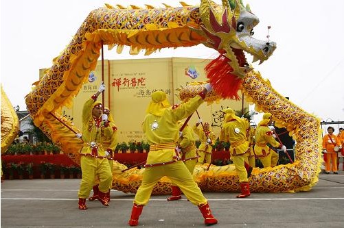 普陀山第22屆“普陀山之春”旅游節(jié)開幕 舞龍隊舞龍助興