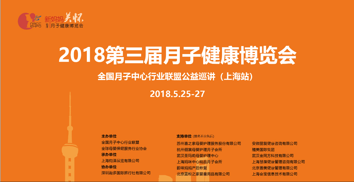 2018第三屆月子健康博覽會全國月子中心行業聯盟公益巡講(上海站)于5月25-27日在上海光大會展中心圓滿舉行