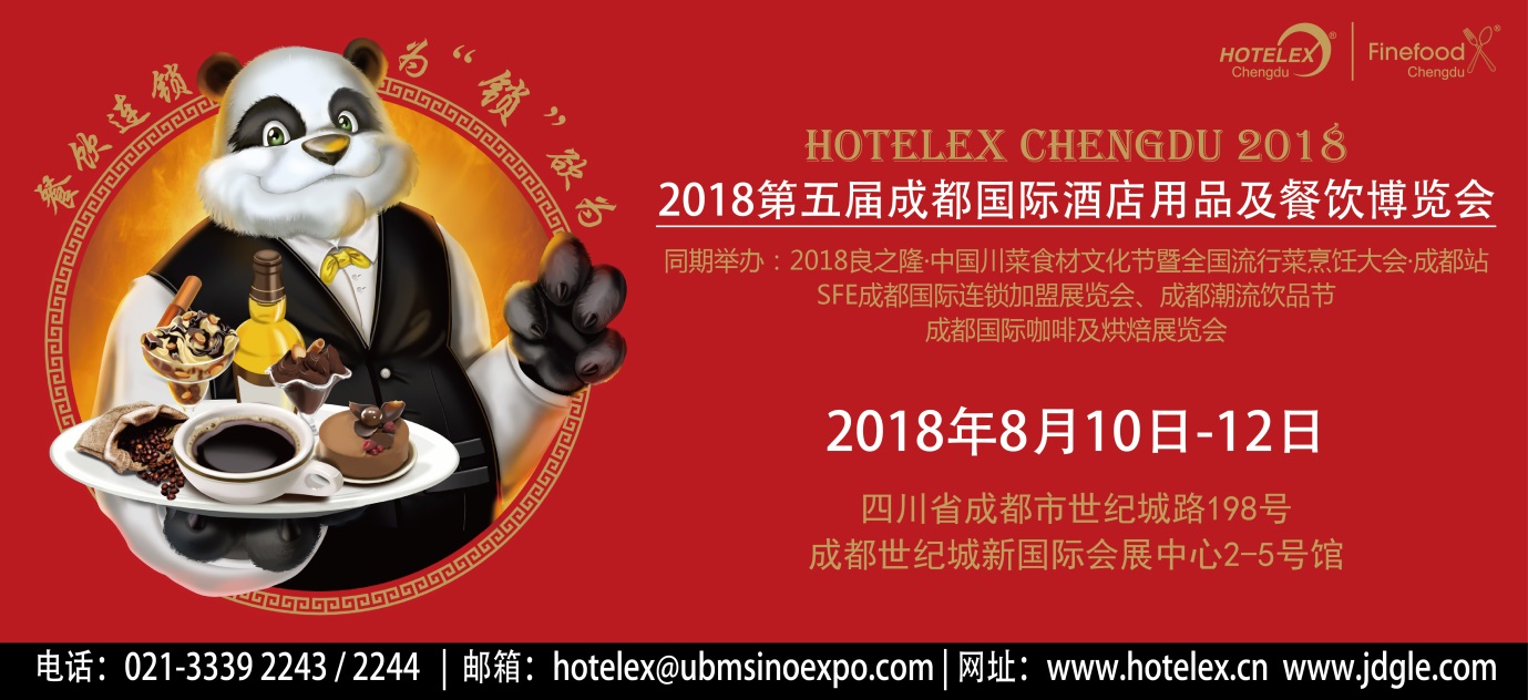 第五屆成都國際酒店用品及餐飲博覽會(簡稱:HOTELEX Chengdu 2018)將于2018年8月10日至12日在成都世紀城新國際會展中心2-5號館舉行(四川省成都市世紀城路198號)。同期還將舉辦2018良之隆中國川菜食材文化節暨全國流行菜烹飪大賽-成都站、SFE成都國際連鎖加盟展覽會、成都潮流飲品節以及成都國際咖啡及烘焙展覽會。作為上海國際酒店及餐飲業博覽會的地方展,立足四川蓉城,輻射西南地區,旨在為客戶提供最豐富優質的選擇。