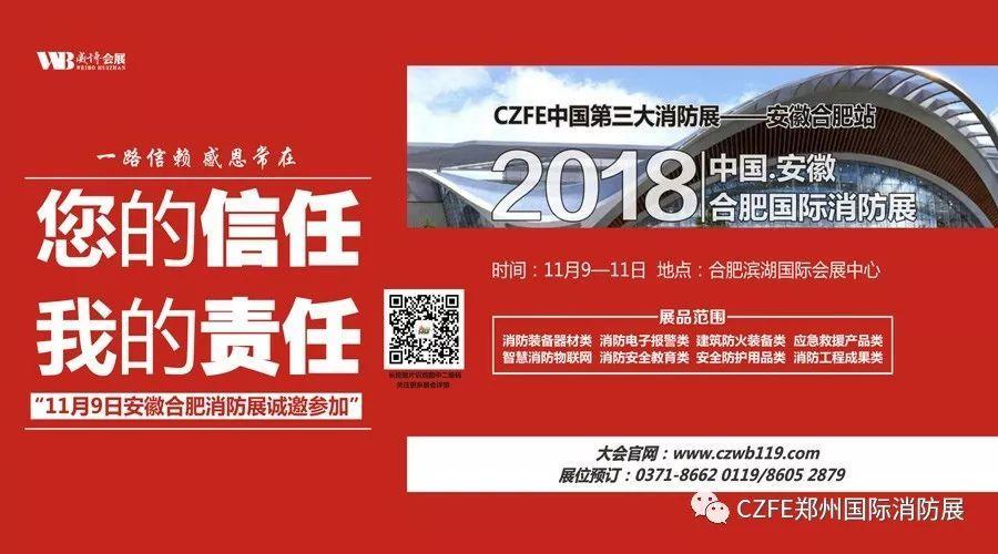 2018年11月9-11日,威博會(huì)展|CZFE鄭州國(guó)際消防展組委會(huì)主辦的安徽(合肥)國(guó)際消防設(shè)備技術(shù)交流展覽會(huì)將在合肥濱湖國(guó)際會(huì)展中心(5號(hào)館)舉辦,規(guī)模10000平米、參展企業(yè)230家、共設(shè)立標(biāo)準(zhǔn)展位500個(gè),特裝展位50個(gè)。據(jù)悉,這是安徽地區(qū)近十年來首次舉辦的大規(guī)模,專業(yè)化消防展會(huì),企業(yè)參展熱情超過預(yù)期目的!