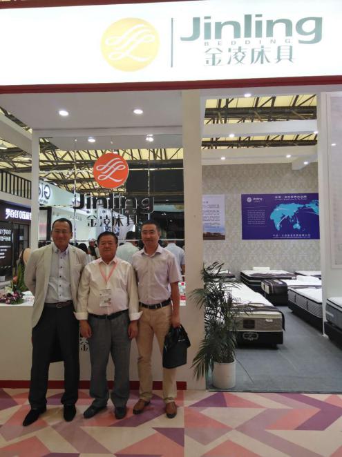 組委會負(fù)責(zé)人(右)與日本采購團(tuán)組織者(左)及參展企業(yè)負(fù)責(zé)人(中),家具博覽會上合影