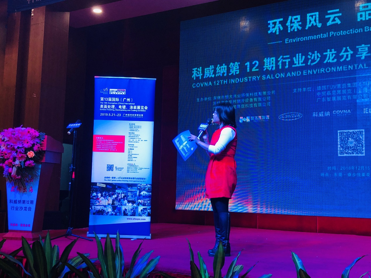 作為華南地區第一大行業沙龍會,科威納第12期行業沙龍分享會匯集了全國各地業內近500多名代表,共同探討華南地區環保產業合作發展新機遇,描繪行業發展新藍圖!會上,2019國際廣州表面處理展組委會上臺發表演講并大力推廣展會,吸引了與會人員的熱切關注,眾行業企業對于組團參加2019國際廣州表面處理展表示高度認可。