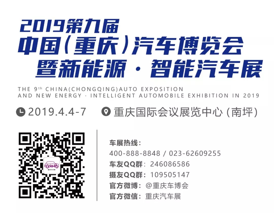 4月4日-7日,來南坪國際會展中心,!2019中國(重慶)汽車博覽會暨新能源.智能汽車展將盛大開幕,現在搜索公眾號“重慶汽車展”即可免費索票,敬請期待哦!