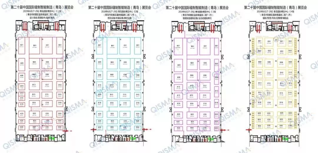 第20屆青島縫制展E1、E2、E3、E4四大主題展館,設計系統/管理軟件/裁床/激光;繡花設備/絎縫設備/家紡設備;智能制造縫制設備/全自動縫制單元;縫制/熨燙/吊掛/后整理/輔助品/包裝/倉儲!