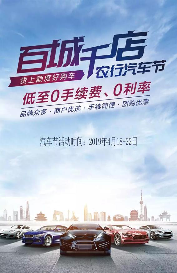 農(nóng)業(yè)銀行:百城千店農(nóng)行購(gòu)車節(jié),低至0手續(xù)費(fèi)、0利率