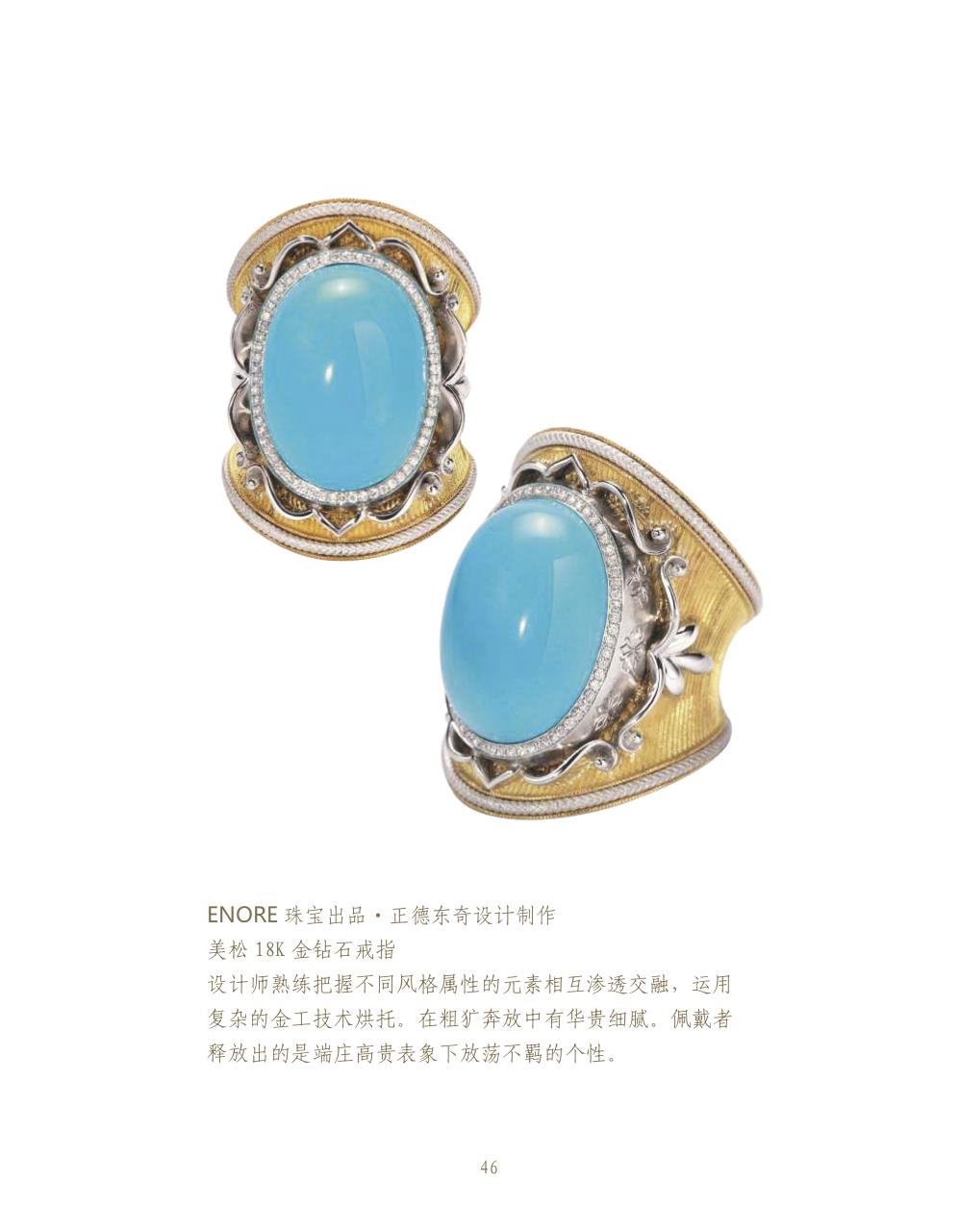富有創作靈感的珠寶設計師都以獨特的個人風格和方法去表達首飾創作,對于他們來說,珠寶首飾的演繹猶如一片黃金瀚海與寶石所組合的景致。設計師追求嶄新造型和精典創作概念,杰出的工匠致力克服一切工藝上的障礙,不論是復雜的結構和金表面的特殊處理效果,或是寶石鑲嵌的精密程度,都精心計算。設計與工藝的完美結合,制作出與時俱進的珠寶首飾藝術品。