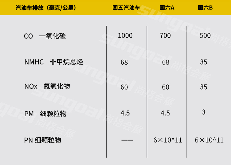 左側那一條排放物,不是化學系畢業的同學多半看不懂。沒關系,我們都是會阿拉伯語的人,數值上,從左往右逐漸減小的趨勢,大家都一清二楚。稍微計算一下,我們更不難發現,國六b的數值,幾乎就是國五的對折啊。