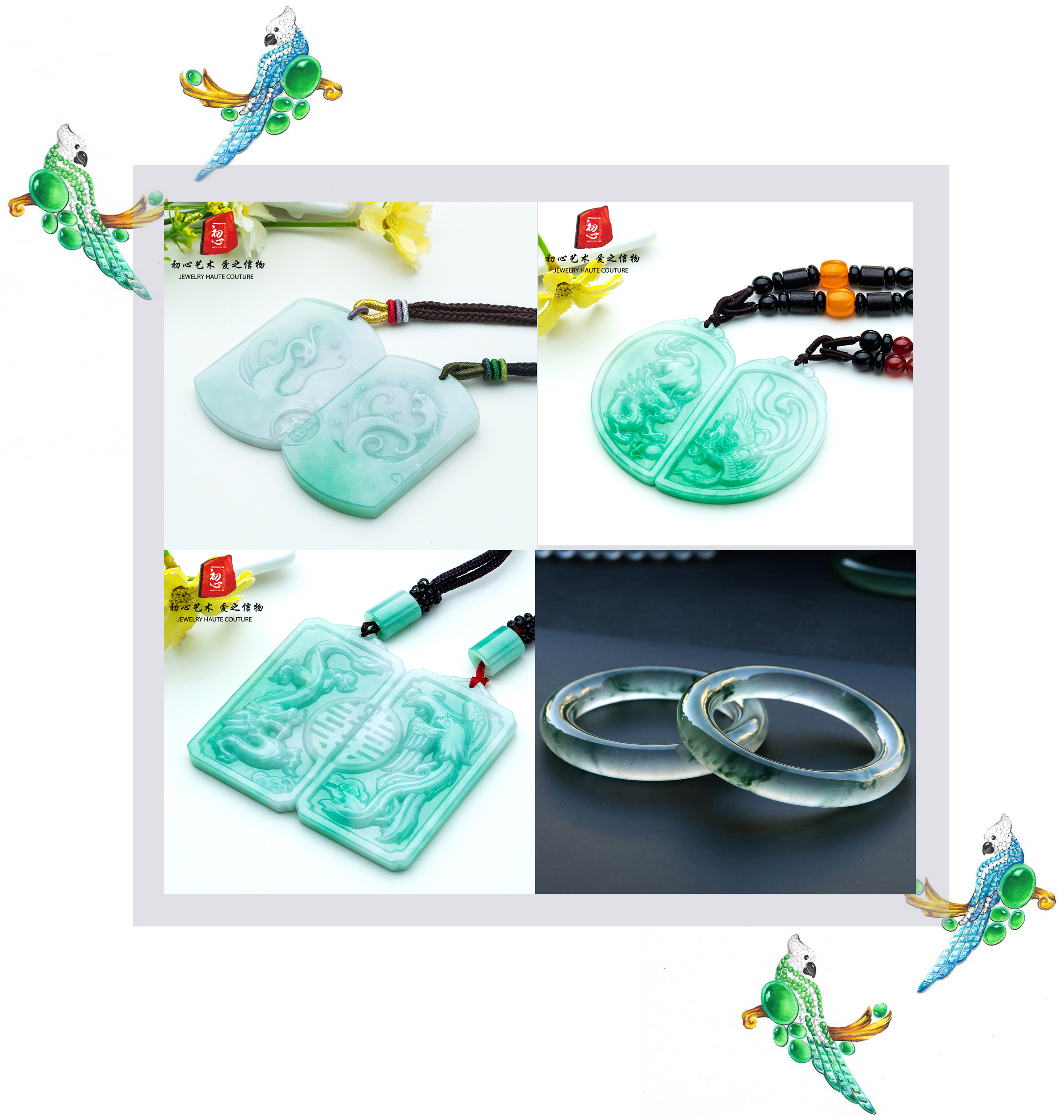情之初心——相遇到相知,相知到相愛,相愛到相伴,相伴到相守。最初開啟這一切的不過是相見時對彼此的初心,隨而邂逅了浪漫一生的愛情。幾千年來,中國信奉以玉定情,何以致契闊? 繞腕雙跳脫。翡翠手鐲水頭十足,質地細膩,繞于腕上,叮鈴作響。何以結恩情?美玉綴羅。互贈玉佩,是為定情。以玉定情 歷久彌堅。這些首飾,美麗耐久,不僅可以相伴主人一生,還可以傳于親人,意義非凡。