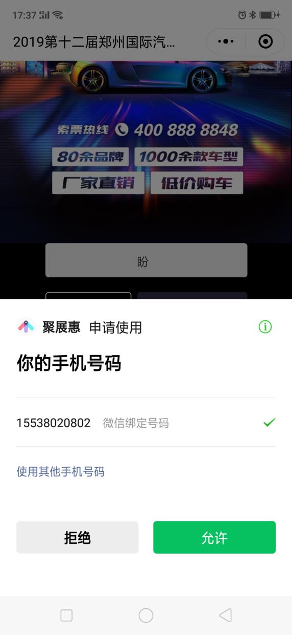 1、長(zhǎng)按識(shí)別下圖“鄭州國(guó)際車(chē)展”小程序二維碼或官方微信菜單“免費(fèi)領(lǐng)券”,輸入昵稱(chēng),點(diǎn)擊“免費(fèi)領(lǐng)券”,允許授權(quán)微信;