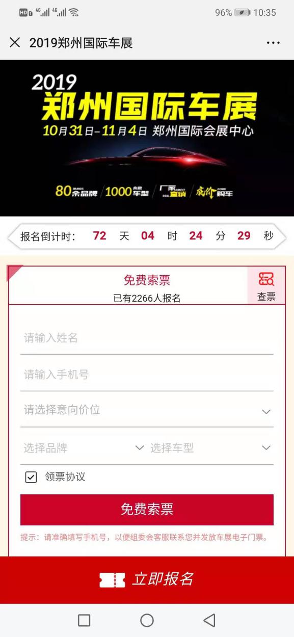 2、準(zhǔn)確填寫(xiě)相關(guān)信息,即可獲得車(chē)展門(mén)票。