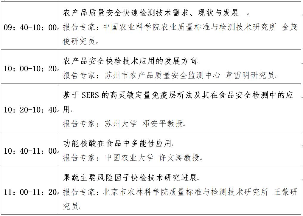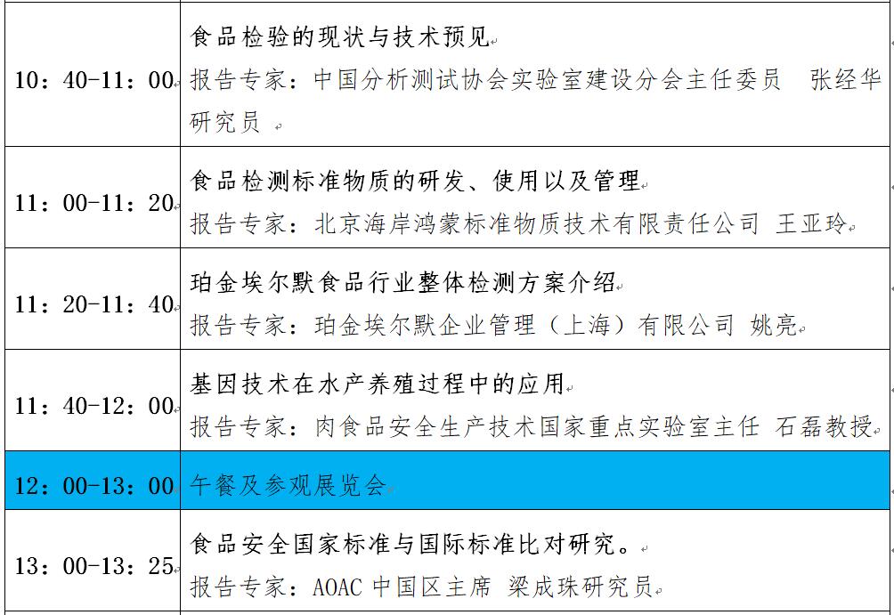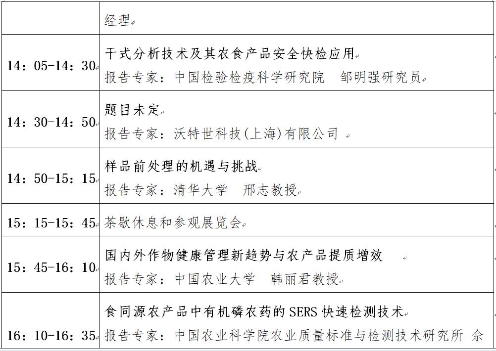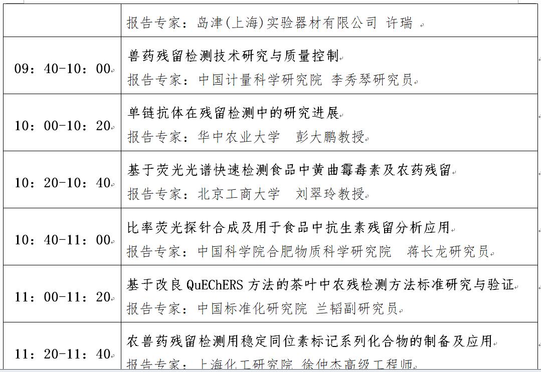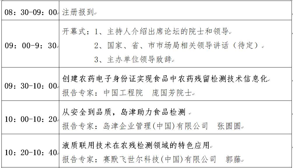 “第十二屆中國食品與農產品安全檢測技術與質量控制國際論壇”大會日程表