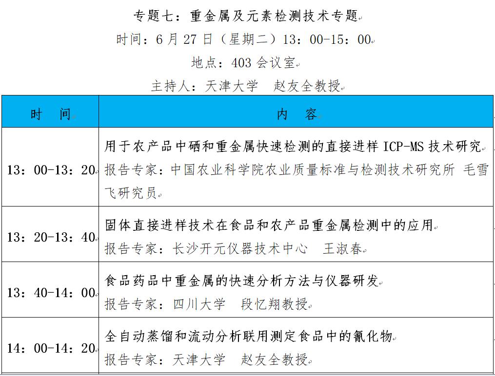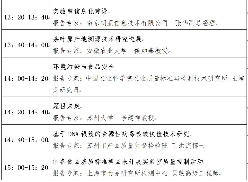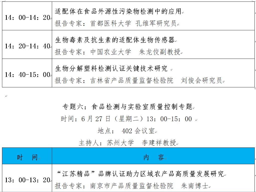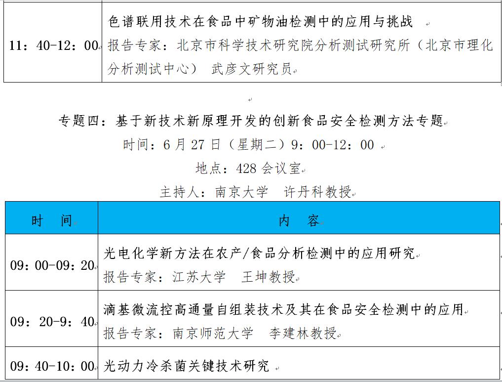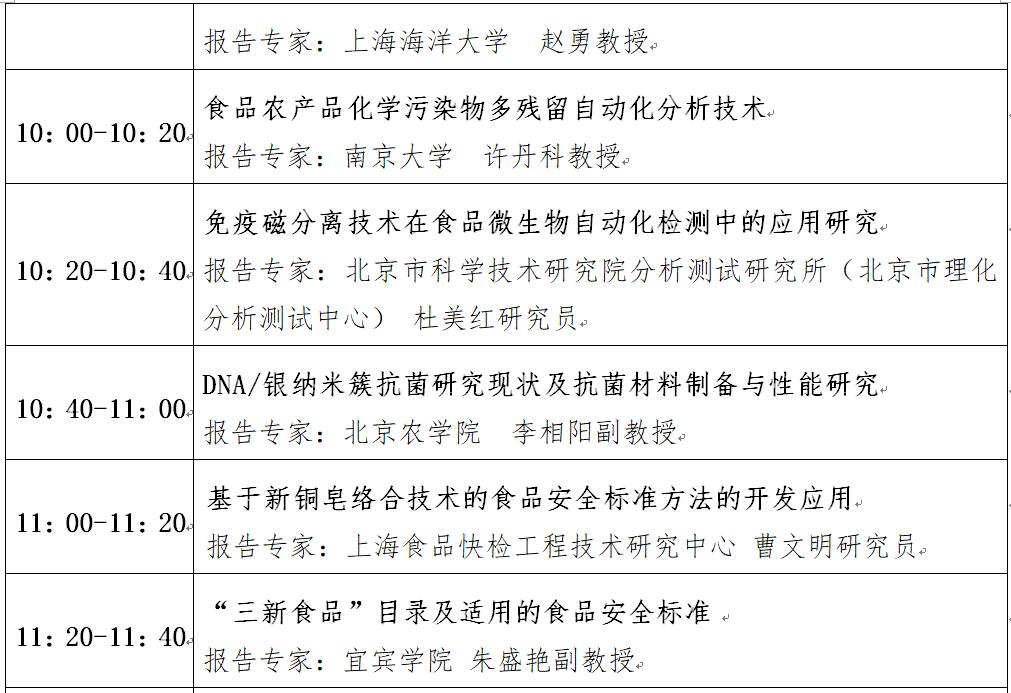 “第十二屆中國食品與農產品安全檢測技術與質量控制國際論壇”大會日程表