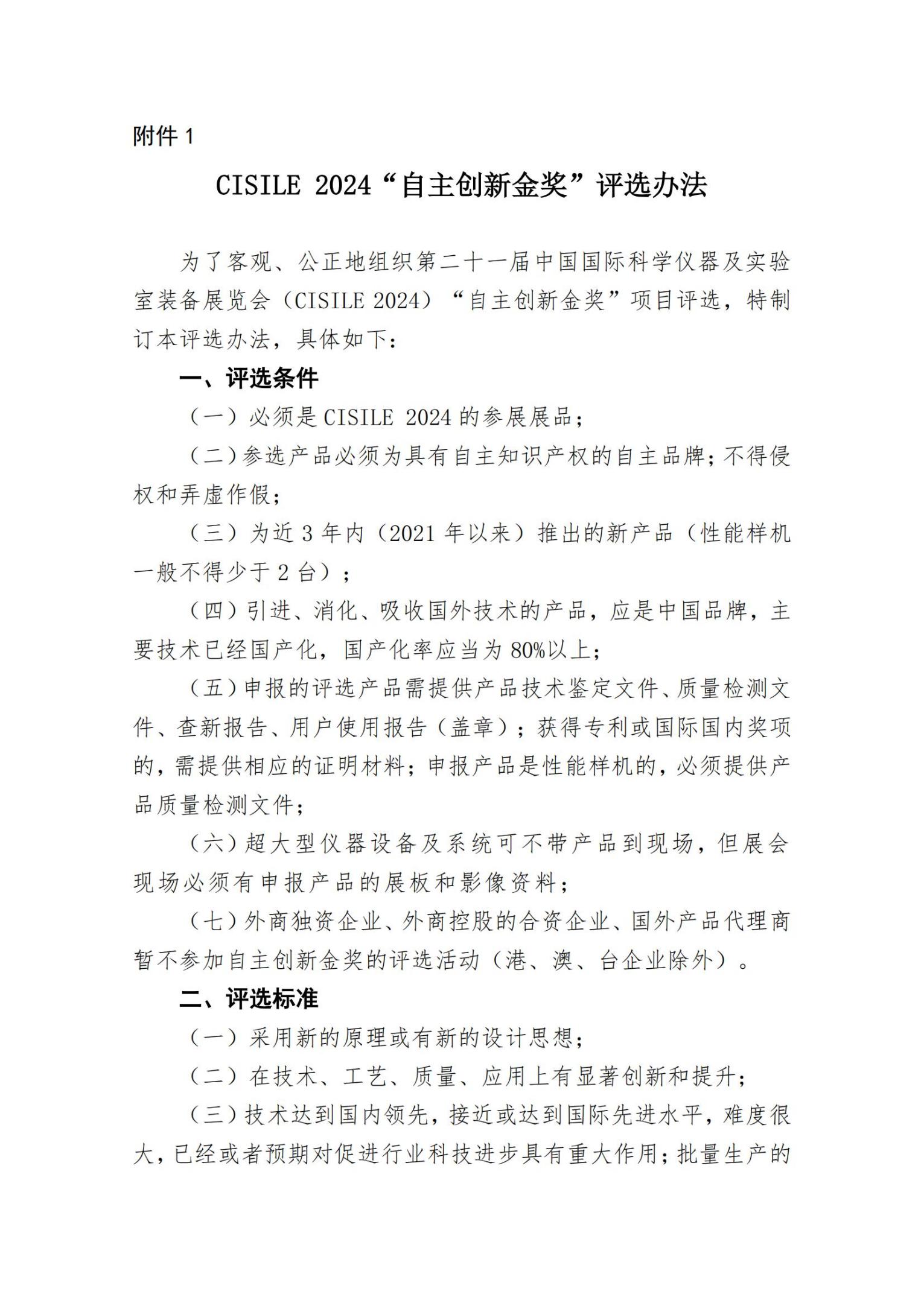 備注:“CISILE2024自主創(chuàng)新金獎”評選辦法詳見附件1