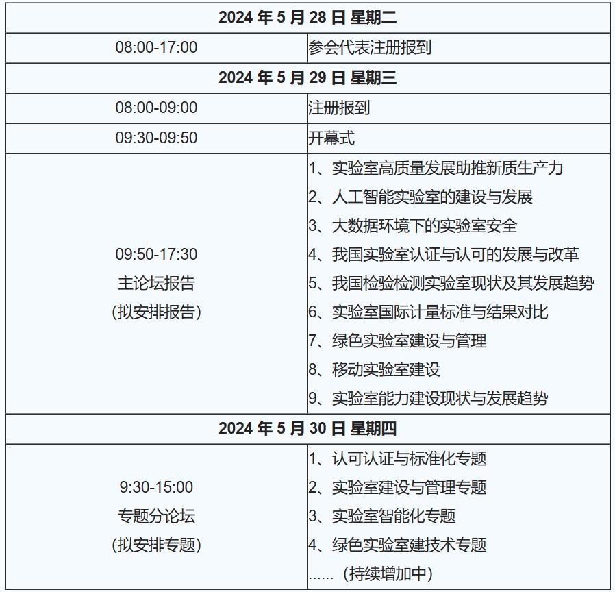 (一)主題報告:擬邀請國家市場監督管理總局、海關總署、國家認證認可監督管理委員會、中國合格評定國家認可委員會等政府主管部門負責人,兩院院士,行業知名專家,企業家就我國實驗室管理及檢測技術宏觀市場環境、發展趨勢、政策解讀等內容作特約報告。