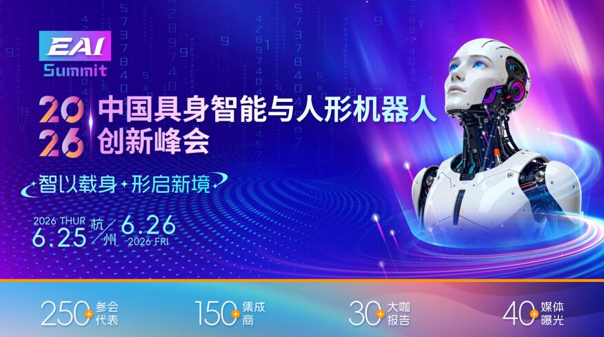 2026中國具身智能與人形機器人創新峰會將與2026年6月25-26日在杭州召開,本屆會議將以 “智以載身,形啟新境”為主題,聚焦,邀請250+來自頂尖科研院所、頭部整機研發和制造企業、核心部件企業,AI企業,高等院校以及行業協會,投融資機構等,將在推動人形機器人智能化、實用化方面發揮關鍵作用,為人形機器人與具身智能的未來發展鋪設堅實道路。
